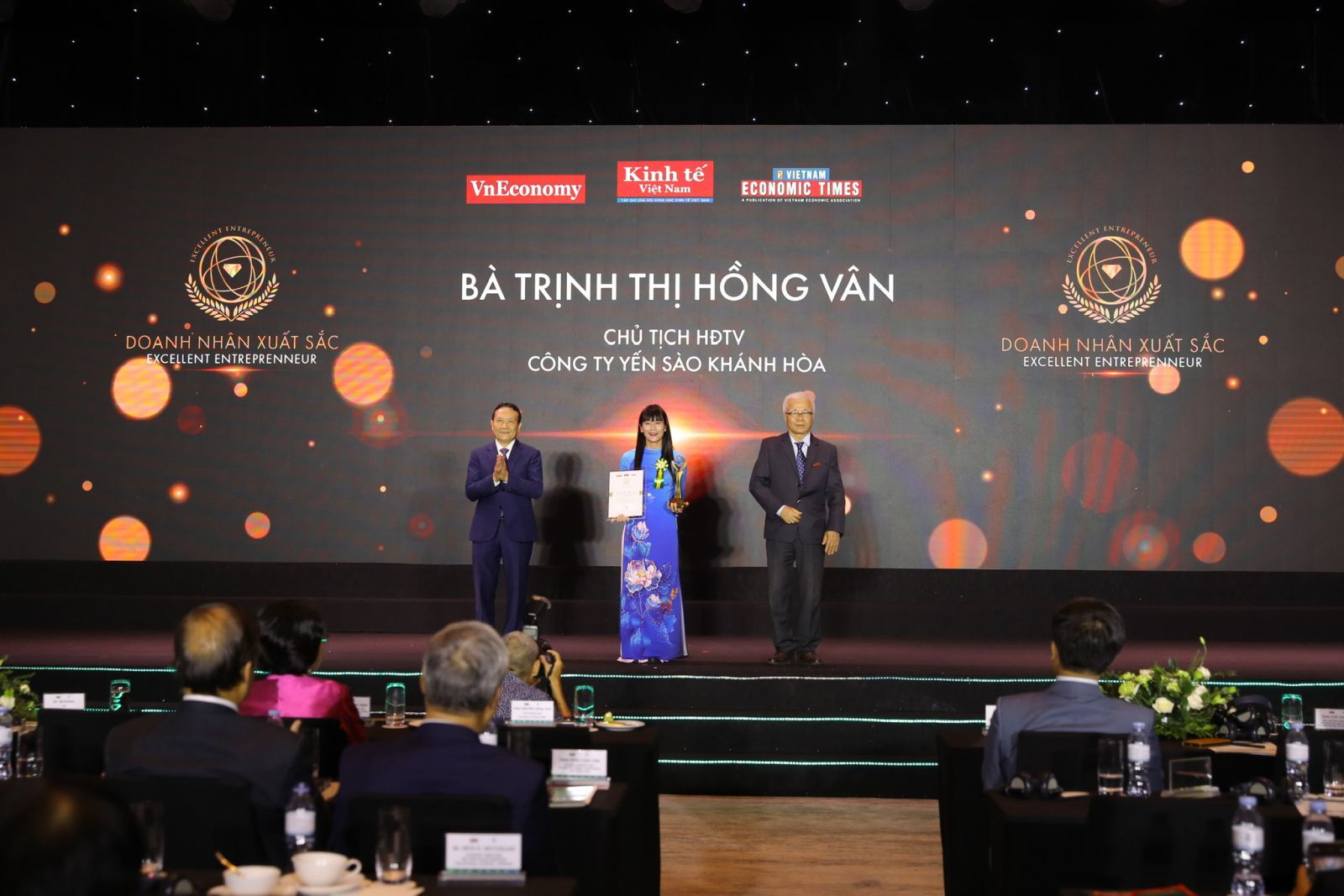 Cũng trong dịp này, Bà Trịnh Thị Hồng Vân – Chủ tịch Hội đồng Thành viên được vinh danh ở hạng mục “ Doanh nhân xuất sắc 2024” để ghi nhận sự đóng góp quan trọng của Bà đối với sự phát triển của thương hiệu doanh nghiệp và nền kinh tế Việt Nam nói chung. Trong cương vị là lãnh đạo doanh nghiệp, Bà đã chỉ đạo điều hành doanh nghiệp hoàn thành chỉ tiêu kế hoạch sản xuất kinh doanh, giúp cán bộ công nhân viên phấn khởi yên tâm công tác, chú trọng bồi dưỡng, chăm sóc sức khỏe, đời sống vật chất tinh thần cho CB CNV Công ty, quản lý, điều hành hoạt động kinh doanh đạt hiệu quả, đóng góp tích cực đến các hoạt động xã hội cộng đồng.